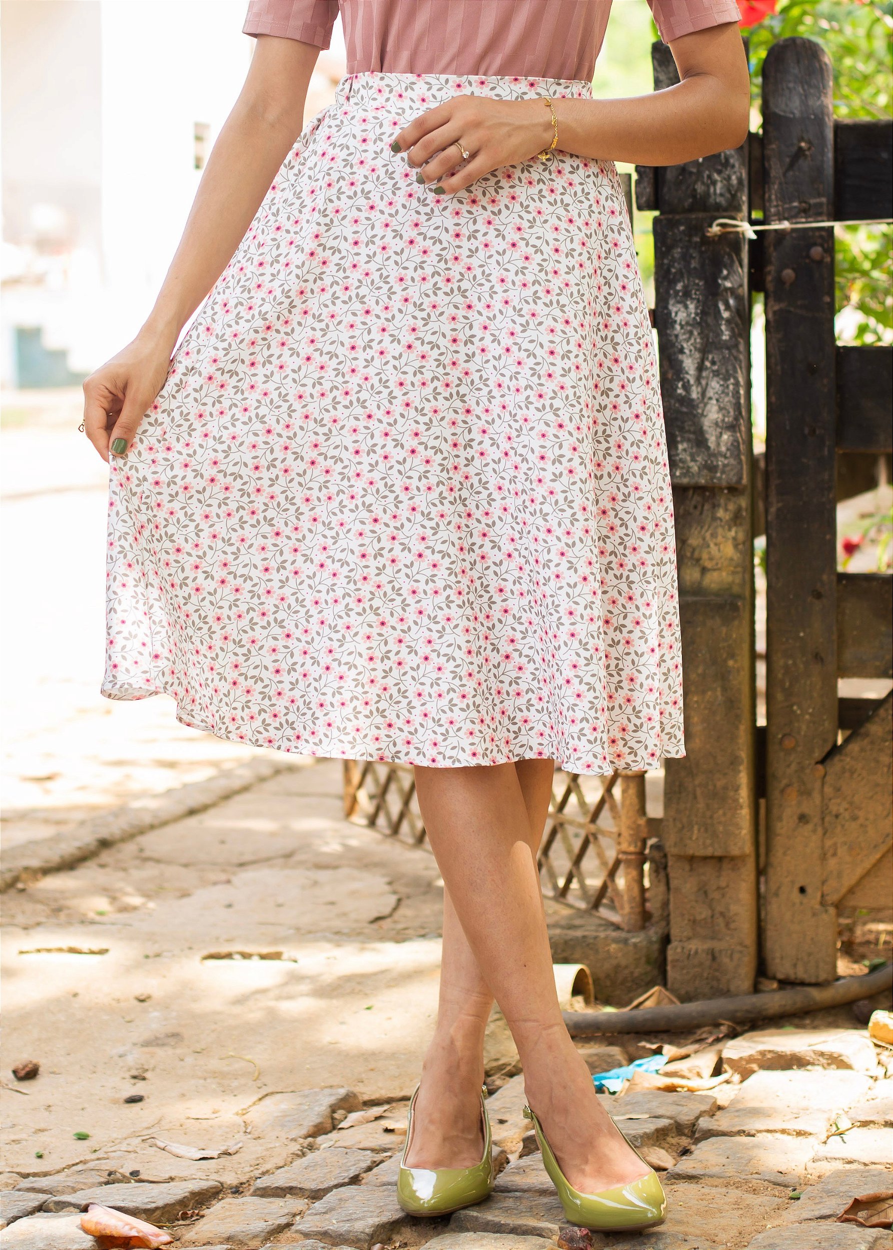SAIA FLORAL DE ELÁSTICO confeccionada em tecido fluido e leve. Este lindo modelo é super fashion e cheio de personalidade sem perder o conforto. A cintura acompanha um cós médio com elástico nas costas. O shape desta peça é amplo e abre em evasê dando um lindo movimento. Caimento fluido, tecido leve e estampa alegre. Ideal para deixar o seu look de passeio incrível! Essa saia de flores tem comprimento padrão 67cm, elástico na parte de trás. Monte seus looks elegantes e confortáveis usando nossa Saia de Elástico Floral.